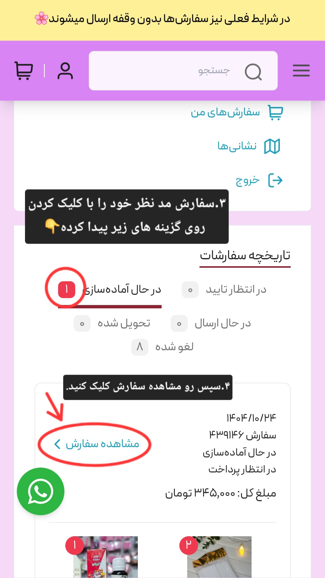 3️⃣در نهایت وضعیت سفارشتون نشان داده میشود.