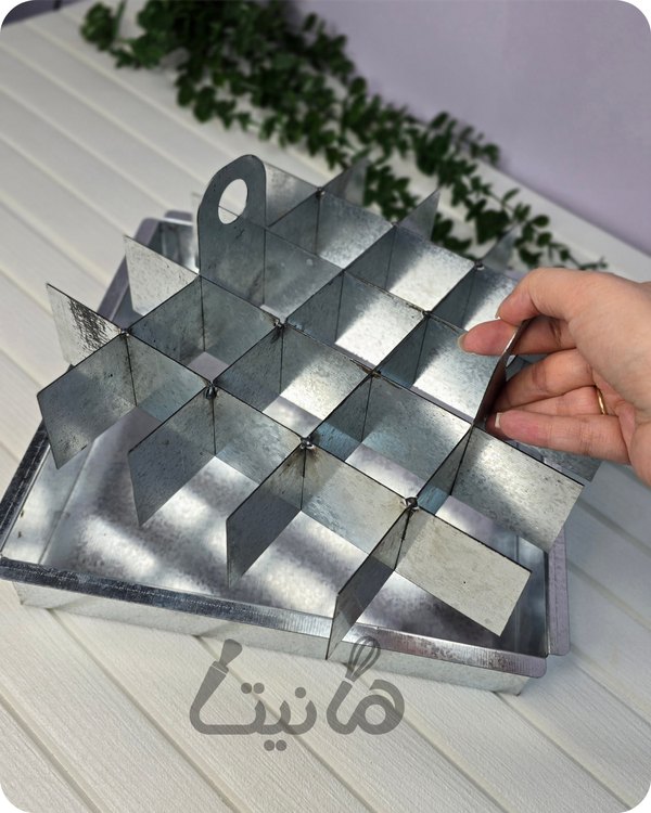 قالب اسلایسی گالوانیزه براونی، ابزاری تخصصی در شیرینیپزی است که برای پخت و برش یکنواخت کیک براونی به کار میرود. این قالب دو بخش اصلی دارد: