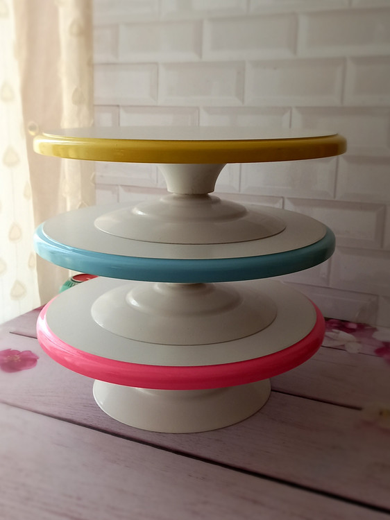 صفحه گردان وسیله ای برای خامه کشی کیک است که با چرخاندن صفحه به راحتی میتوانید دورتا دور کیک را کاردک بکشید و خامه کشی یکدست و صافی داشته باشید. کیفیت درجه یک چرخش بسیار روان جنس: mdf قطر: ۲۸ سانت، پایه: فلزی