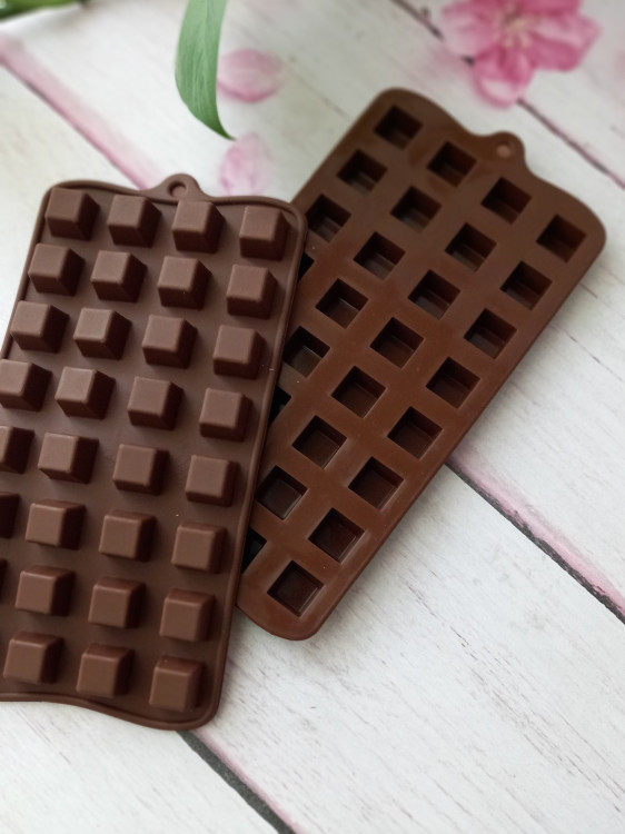 ابعاد هر قطعه شکلات: ۱.۵ در ۱.۵ و عمق ۱.۱ سانت