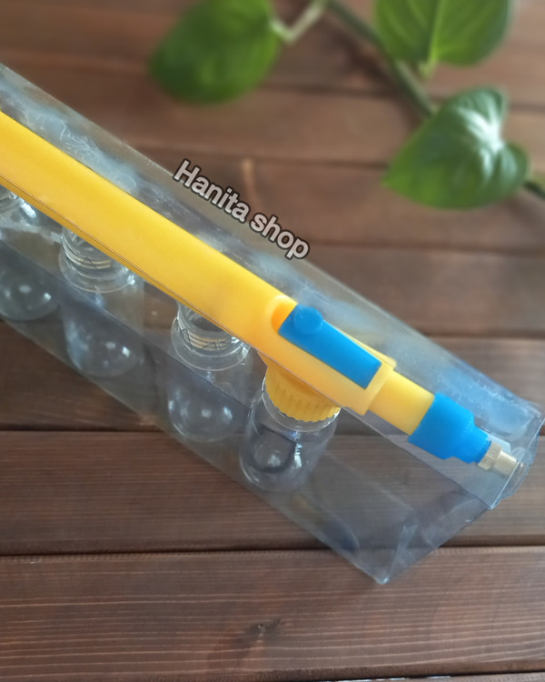 برای اسپری کردن رنگ ژلهای آن را با کمی آب رقیق کنید و داخل مخزم ریخته و نی را نیز به آن وصل کنید.